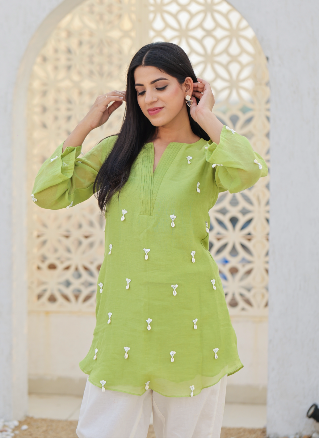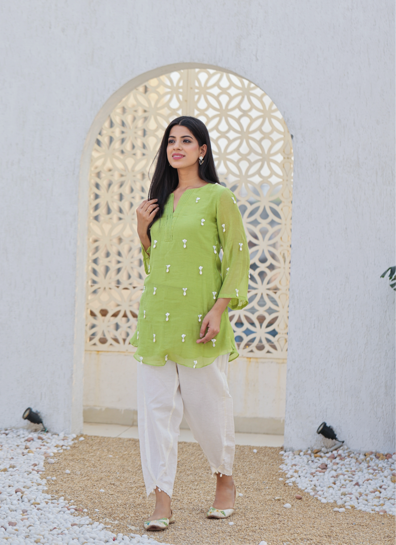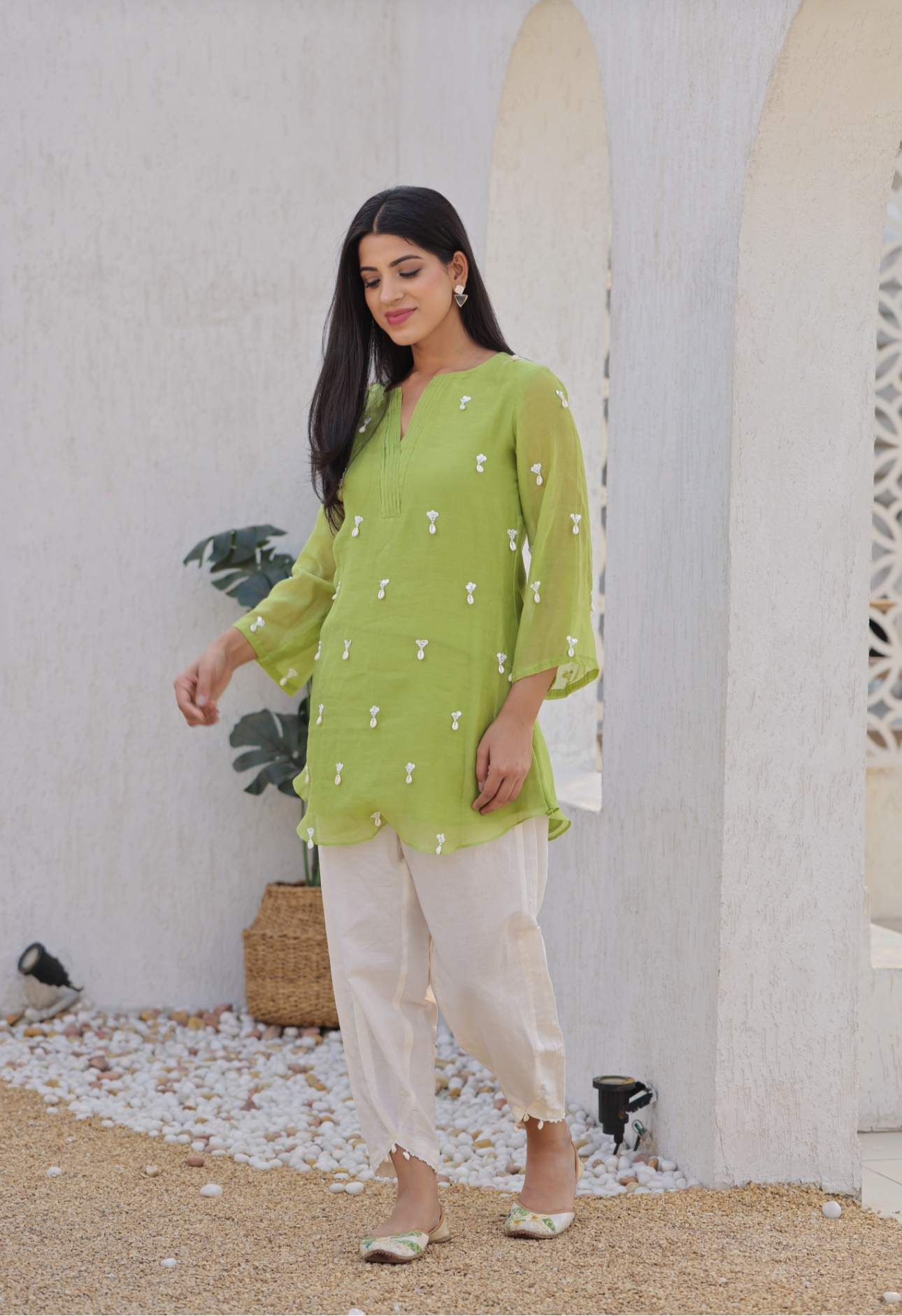 Tota green kurta with Pakistani Pants – sippi and kodi work