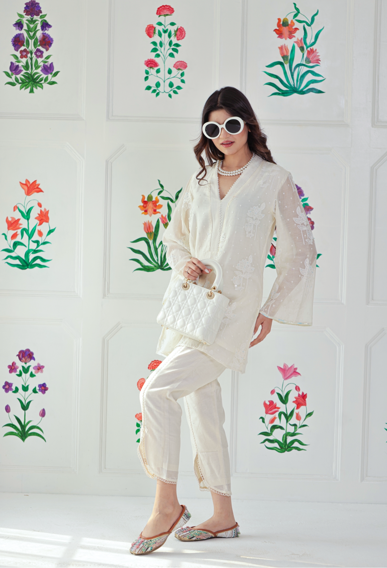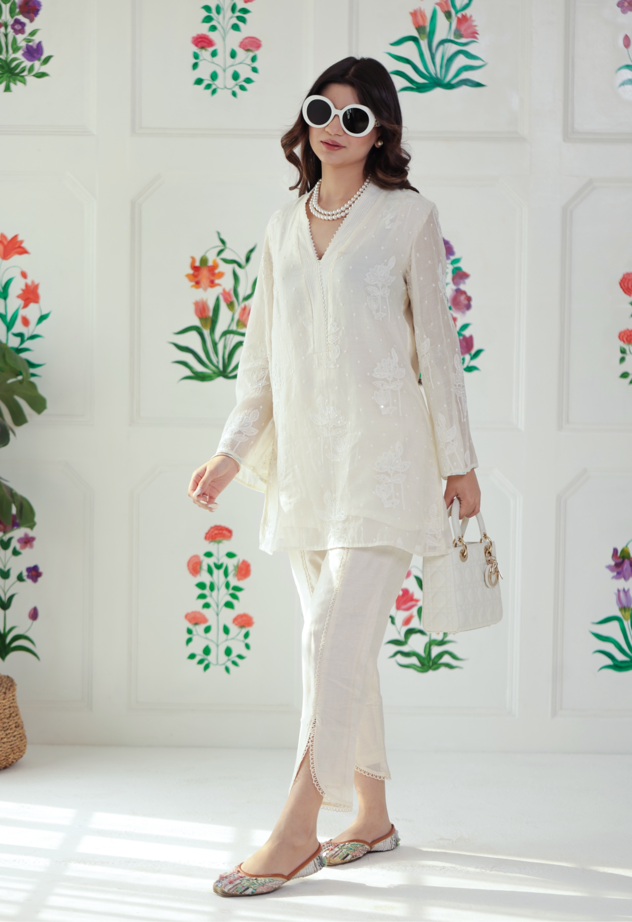 White kurta with flap pants – Thread & Pearl Detailing
