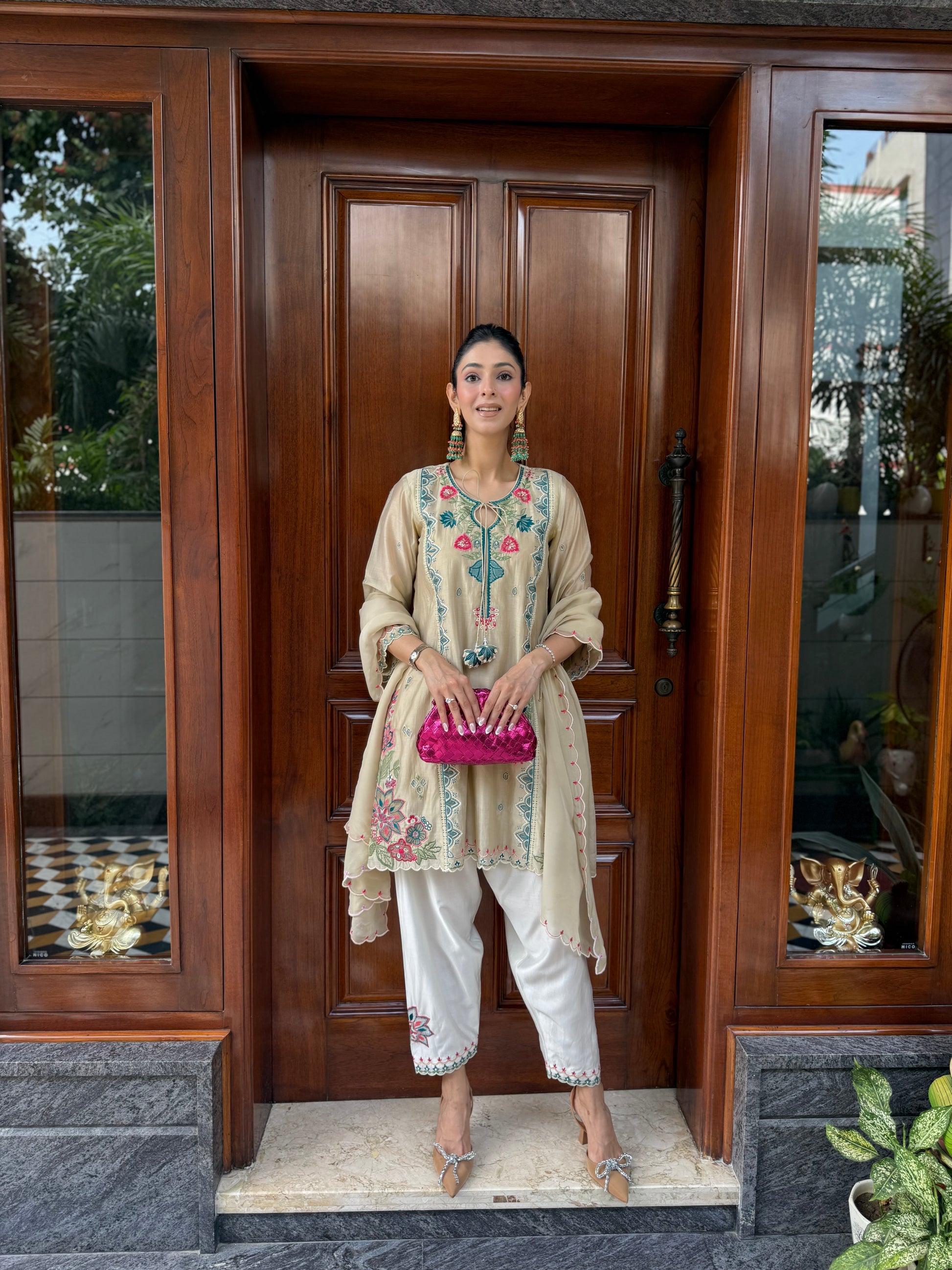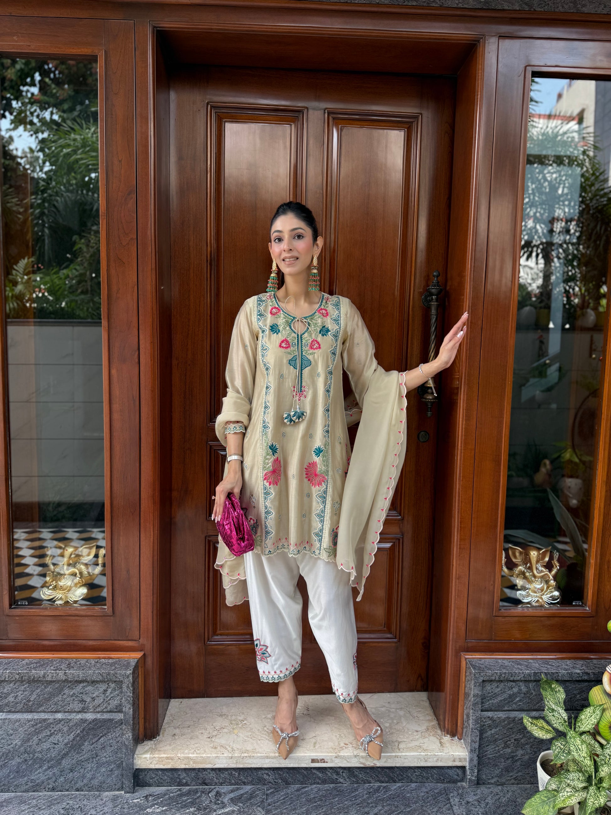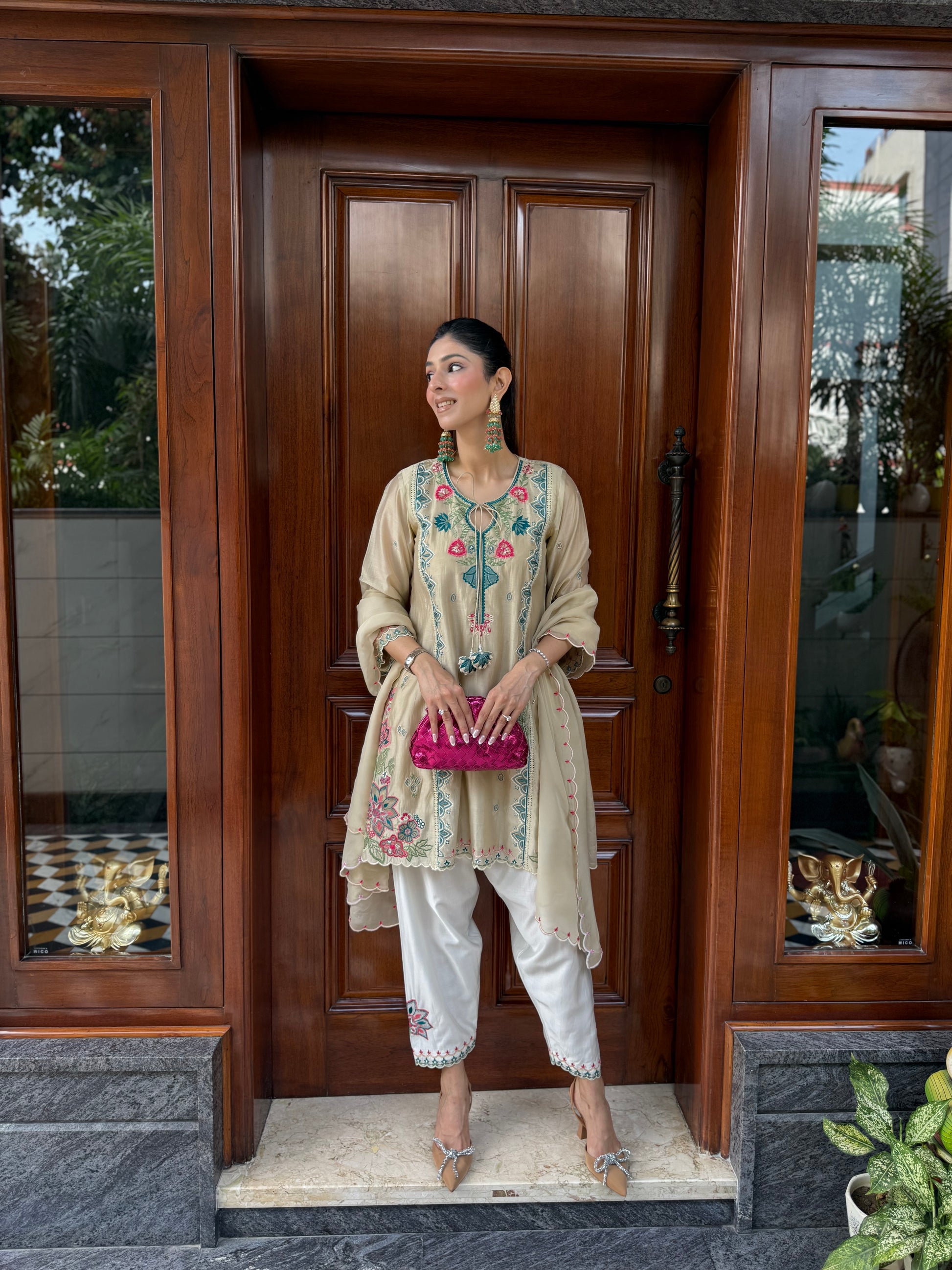 “A serene olive green ensemble from our Gul-e-Bagh collection, adorned with delicate floral embroidery that mirrors a blooming garden under clear summer skies. Crafted in airy fabric for effortless drape, this piece captures the freshness of spring and the elegance of timeless tradition.”
